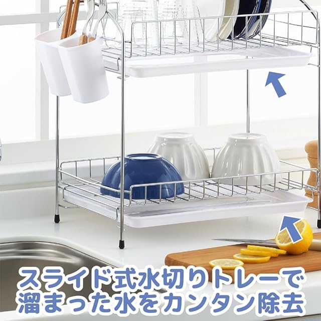 タマハシ(Tamahashi) デイズ 立てて乾かせる 水切りラック 約260×410×355mm 2段 カトラリーケース付き スライド式のトレー 食器乾燥 省スペース 水切りかご DS-05