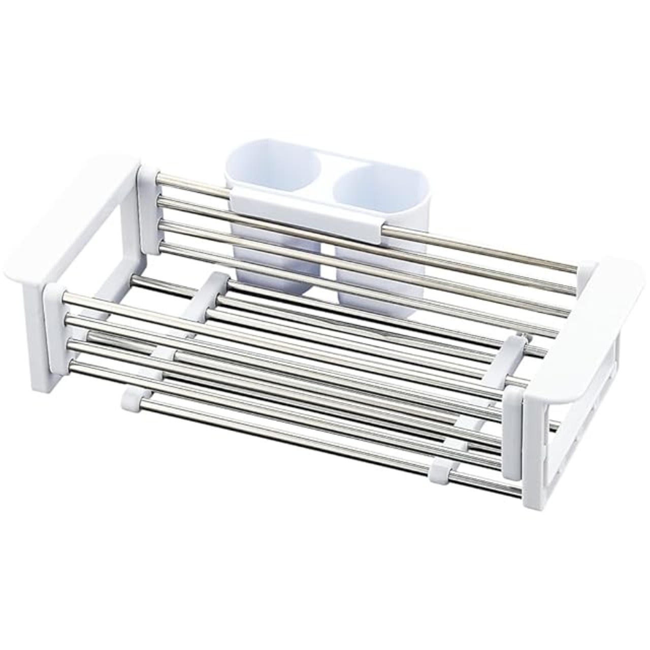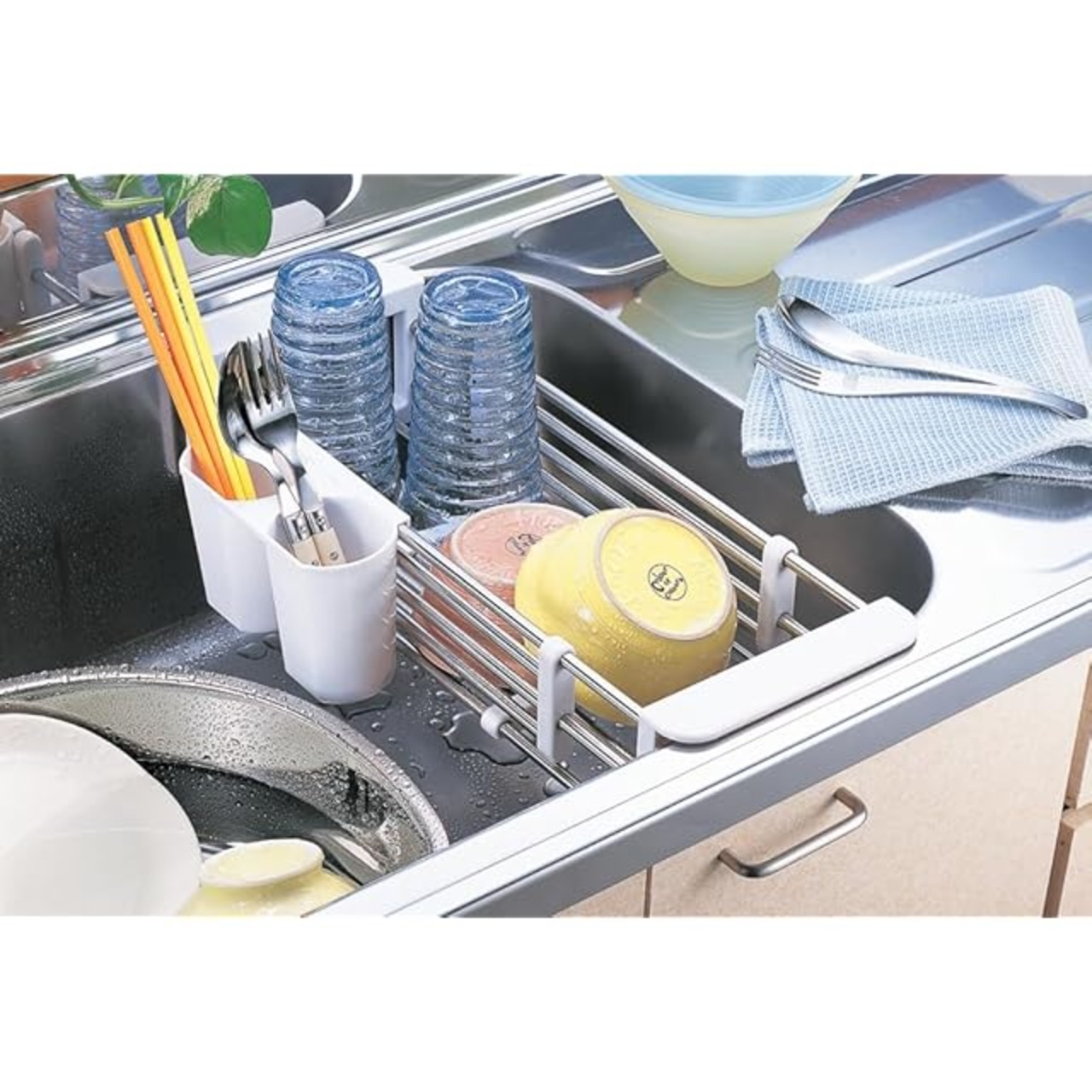 タマハシ(Tamahashi) デイズ シンクに合わせて調節できる 水切りラック サイズ カトラリーケース付き 錆びにくいステンレス製 伸縮タイプ カトラリーケース付き 食器乾燥 省スペース 水切りかご DS-03