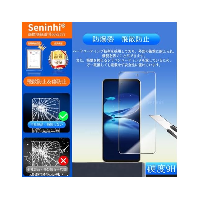 【飛散防止と傷防止】AGCガラス素材で強い9Hの表面硬度を持っているため、ナイフなどの鋭利なものを当てても傷がつきません。シリコンコーティングを内蔵して衝撃を緩和します。万が一ガラスが破損した場合、スクリーンをきちんと保護しながら怪我を防ぎます。