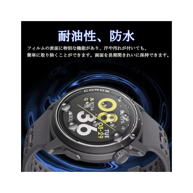 <b>対応 COROS(カロス)PACE 3 フィルム 腕時計スクリーン 保護フィルム</b><br><br><b>特徴</b><br><b>1【専用設計·簡単に貼り付け】</b><br>COROS(カロス)PACE 3 ガラスフィルム。フィルムのシリコン自己吸着層により、スチールフィルムを携帯電話に合わせて軽く置くだけで、気泡が入らないように簡単に取り付けられます。<br><br><b>2【超高透過率】</b><br>新しいアップグレードした光学プロジェクション技術を使って、液晶画面 保護ガラス フィルム を改良した後、<br>約99.9%の高い光線透過率に達し、より高い光透過率と超クリアな視覚体験を実現します。<br>液晶画面の本来の美しさを損なわないません。高精細度でいつでも写真やビデオを楽しむことができます。<br><br><b>3【高品質の材料の9H硬度】</b><br>スマートウォッチ保護フィルムの中で最高レベルの9H硬度に達しています、4.5時間以上の高温焼入れ処理を行い、<br>スクリーンプロテクターの圧強度は 125mpa に達し、通常 ガラス の 5 倍になりました。<br>しかもスクリーンプロテクターは衝撃を抑えるシリコンコーティングを内蔵しており、万が一ガラスが割れても、ガラスの破片が飛散しません。<br><br><b>4【汚れ防止&指紋防止 / 防水 / 耐油性】</b><br>保護フィルム は、石材ナノコーティング層の最新の指紋防止技術を使用していますので、通常フィルム のようなラフなタッチは一切ありません。<br>画面がさらさらで指紋が付きにくい、高感度で快適な操作を実現、汗防止、長時間の楽しみなどの利点もあります。<br>*万が一付着した指紋、水滴、汗、化粧品などは簡単に拭き取れます。<br><br><b>5【品質に関しては 】</b><br>日本の有名ブランド,私々は常にお客様の視角より、すべての細かいところを見て、品質第一、サービス第一、コストパフォーマンスが第一にしております。<br>私たちが追求することは、製品を購入したユーザー様の生活をより便利に、より快適になることです。<br>美しい人生を作ることを目指して、良いものだけではなく、お客様に最高の製品を提供することが!!!