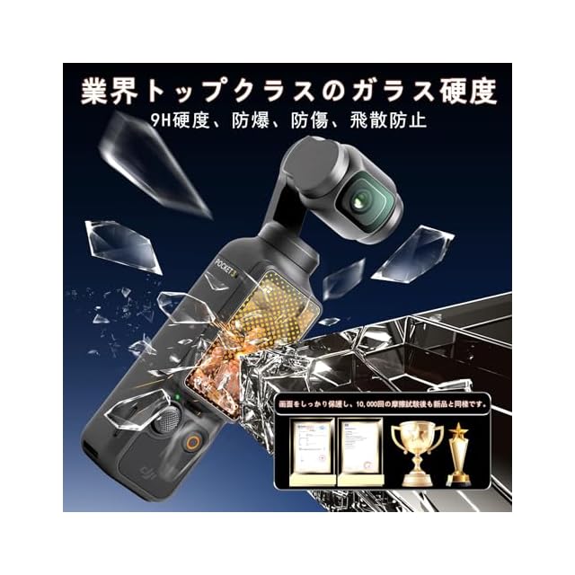 ☞【国産AGC旭硝子ガラス素材】 ガラスフィルムに国産AGCガラスを採用し、4.5時間の高温焼入れ処理して、製造の強化を繰り返し、その硬さは業界トップレベルの9Hに達しました。市販の通常製品の5倍の硬さに達し、ナイフなどの鋭いものでも傷しません。ハードコーティング技術を利用して、外部衝撃を吸収し、防爆性をアップして、外からの衝撃に簡単に対処し、衝突を恐れなく、画面が壊れるリスクを 99% 減らします。更に DJI OSMO Pocket 3 専用の強化ガラスフィルムは飛散防止加工を行っておりますので、万が一ガラスが割れても怪我を与えません。