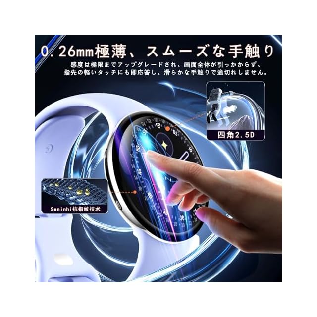 3【高品質の材料の9H硬度】スマートウォッチ保護フィルムの中で最高レベルの9H硬度に達しています、4.5時間以上の高温焼入れ処理を行い、スクリーンプロテクターの圧強度は 125mpa に達し、通常 ガラス の 5 倍になりました。しかもスクリーンプロテクターは衝撃を抑えるシリコンコーティングを内蔵しており、万が一ガラスが割れても、ガラスの破片が飛散しません。