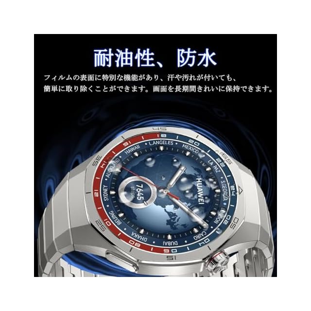 <b>対応 HUAWEI WATCH GT5 PRO 46mm フィルム 腕時計スクリーン 保護フィルム</b><br><br><b>特徴</b><br><b>1【専用設計·簡単に貼り付け】</b><br>HUAWEI WATCH GT5 PRO 46mm ガラスフィルム。フィルムのシリコン自己吸着層により、スチールフィルムを携帯電話に合わせて軽く置くだけで、気泡が入らないように簡単に取り付けられます。<br><br><b>2【超高透過率】</b><br>新しいアップグレードした光学プロジェクション技術を使って、液晶画面 保護ガラス フィルム を改良した後、<br>約99.9%の高い光線透過率に達し、より高い光透過率と超クリアな視覚体験を実現します。<br>液晶画面の本来の美しさを損なわないません。高精細度でいつでも写真やビデオを楽しむことができます。<br><br><b>3【高品質の材料の9H硬度】</b><br>スマートウォッチ保護フィルムの中で最高レベルの9H硬度に達しています、4.5時間以上の高温焼入れ処理を行い、<br>スクリーンプロテクターの圧強度は 125mpa に達し、通常 ガラス の 5 倍になりました。<br>しかもスクリーンプロテクターは衝撃を抑えるシリコンコーティングを内蔵しており、万が一ガラスが割れても、ガラスの破片が飛散しません。<br><br><b>4【汚れ防止&指紋防止 / 防水 / 耐油性】</b><br>保護フィルム は、石材ナノコーティング層の最新の指紋防止技術を使用していますので、通常フィルム のようなラフなタッチは一切ありません。<br>画面がさらさらで指紋が付きにくい、高感度で快適な操作を実現、汗防止、長時間の楽しみなどの利点もあります。<br>*万が一付着した指紋、水滴、汗、化粧品などは簡単に拭き取れます。<br><br><b>5【品質に関しては 】</b><br>日本の有名ブランド,私々は常にお客様の視角より、すべての細かいところを見て、品質第一、サービス第一、コストパフォーマンスが第一にしております。<br>私たちが追求することは、製品を購入したユーザー様の生活をより便利に、より快適になることです。<br>美しい人生を作ることを目指して、良いものだけではなく、お客様に最高の製品を提供することが!!!
