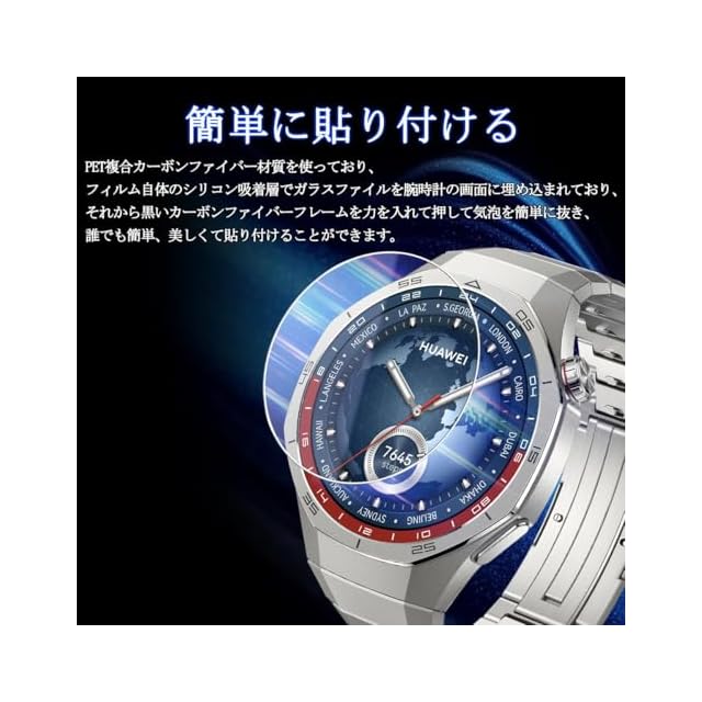 1【専用設計·簡単に貼り付け】HUAWEI WATCH GT5 PRO 46mm ガラスフィルム。本商品は国産AGC旭硝子 素材を採用して作られております。フィルムのシリコン自己吸着層により、スチールフィルムを携帯電話に合わせて軽く置くだけで、気泡が入らないように簡単に取り付けられます。