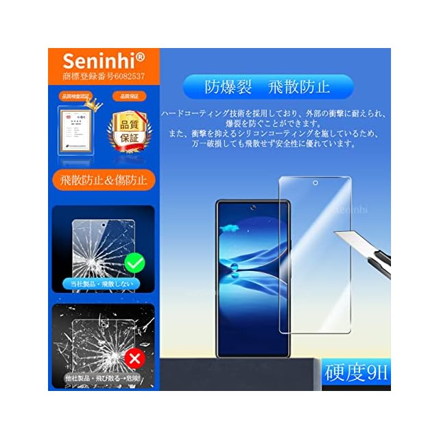 【飛散防止と傷防止】AGCガラス素材で強い9Hの表面硬度を持っているため、ナイフなどの鋭利なものを当てても傷がつきません。シリコンコーティングを内蔵して衝撃を緩和します。万が一ガラスが破損した場合、スクリーンをきちんと保護しながら怪我を防ぎます。