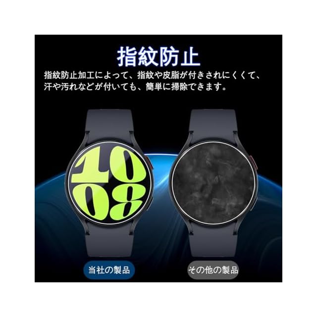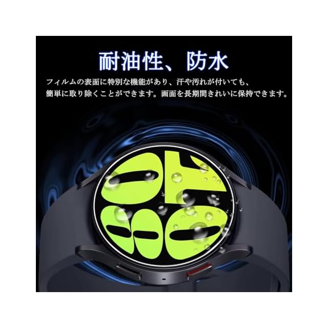 1【専用設計·簡単に貼り付け】 Galaxy Watch 6 44mm ガラスフィルム。本商品は国産AGC旭硝子 素材を採用して作られております。フィルムのシリコン自己吸着層により、スチールフィルムを携帯電話に合わせて軽く置くだけで、気泡が入らないように簡単に取り付けられます。