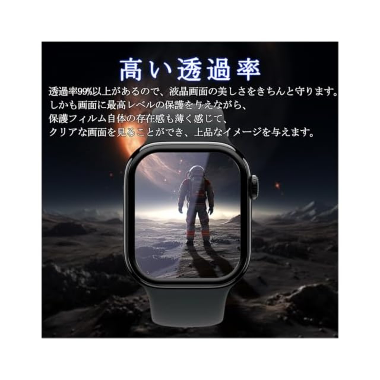 <b>対応 Apple Watch series 10 / Watch series 11 42mm フィルム 腕時計スクリーン</b><br><br><b>特徴</b><br><b>1【専用設計·簡単に貼り付け】</b><br>Watch series 10 / 11 42mm 保護フィルム。フィルムのシリコン自己吸着層により、スチールフィルムを携帯電話に合わせて軽く置くだけで、気泡が入らないように簡単に取り付けられます。<br><br><b>2【超高透過率】</b><br>新しいアップグレードした光学プロジェクション技術を使って、液晶画面 保護ガラス フィルム を改良した後、<br>約99.9%の高い光線透過率に達し、より高い光透過率と超クリアな視覚体験を実現します。<br>液晶画面の本来の美しさを損なわないません。高精細度でいつでも写真やビデオを楽しむことができます。<br><br><b>3【高品質の材料の9H硬度】</b><br>スマートウォッチ保護フィルムの中で最高レベルの9H硬度に達しています、4.5時間以上の高温焼入れ処理を行い、<br>スクリーンプロテクターの圧強度は 125mpa に達し、通常 ガラス の 5 倍になりました。<br>しかもスクリーンプロテクターは衝撃を抑えるシリコンコーティングを内蔵しており、万が一ガラスが割れても、ガラスの破片が飛散しません。<br><br><b>4【汚れ防止&指紋防止 / 防水 / 耐油性】</b><br>保護フィルム は、石材ナノコーティング層の最新の指紋防止技術を使用していますので、通常フィルム のようなラフなタッチは一切ありません。<br>画面がさらさらで指紋が付きにくい、高感度で快適な操作を実現、汗防止、長時間の楽しみなどの利点もあります。<br>*万が一付着した指紋、水滴、汗、化粧品などは簡単に拭き取れます。<br><br><b>5【品質に関しては 】</b><br>日本の有名ブランド,私々は常にお客様の視角より、すべての細かいところを見て、品質第一、サービス第一、コストパフォーマンスが第一にしております。<br>私たちが追求することは、製品を購入したユーザー様の生活をより便利に、より快適になることです。<br>美しい人生を作ることを目指して、良いものだけではなく、お客様に最高の製品を提供することが!!!