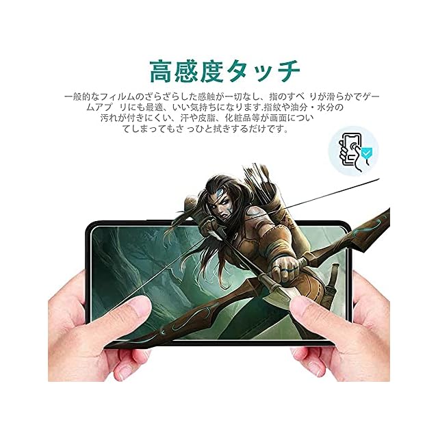 【指紋防止良い効果-業界最高】一般的なフィルムのざらざらした感触が一切なし、指のすべりが滑らかでゲームアプリにも最適、いい気持ちになります。指紋や油分·水分の汚れが付きにくい、汗や皮脂、化粧品等が画面についてしまってもさっとひと拭きするだけです。