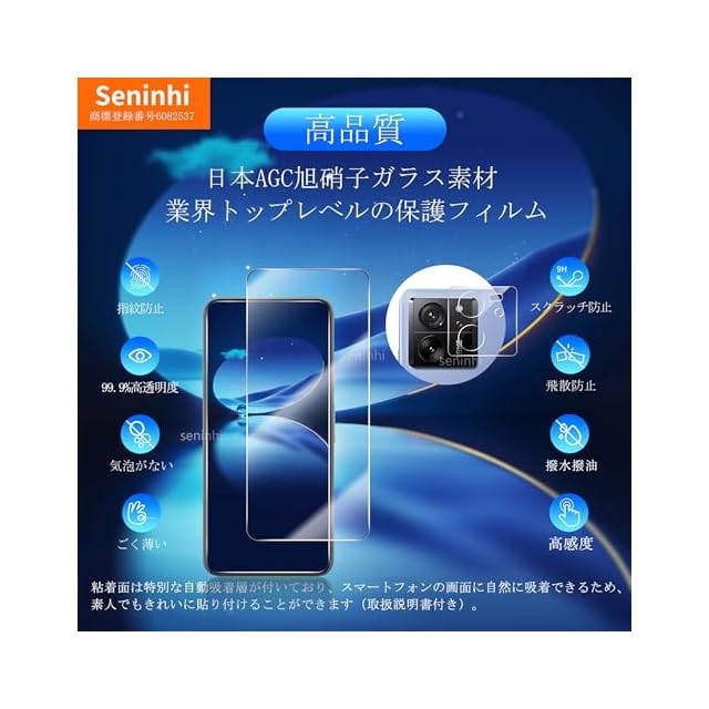 商品名:対応 Xiaomi 13T / 13T Pro ガラスフィルム レンズ保護フィルム 指紋防止 Xiaomi13T Pro 強化ガラス 硬度9H 国産旭硝子AGC素材 気泡ゼロ 飛散防止 高感度 衝撃吸収 ラウンドエッジ加工 【2枚液晶保護フィルム+2枚レンズ保護フィルム】 SXWXM13T22