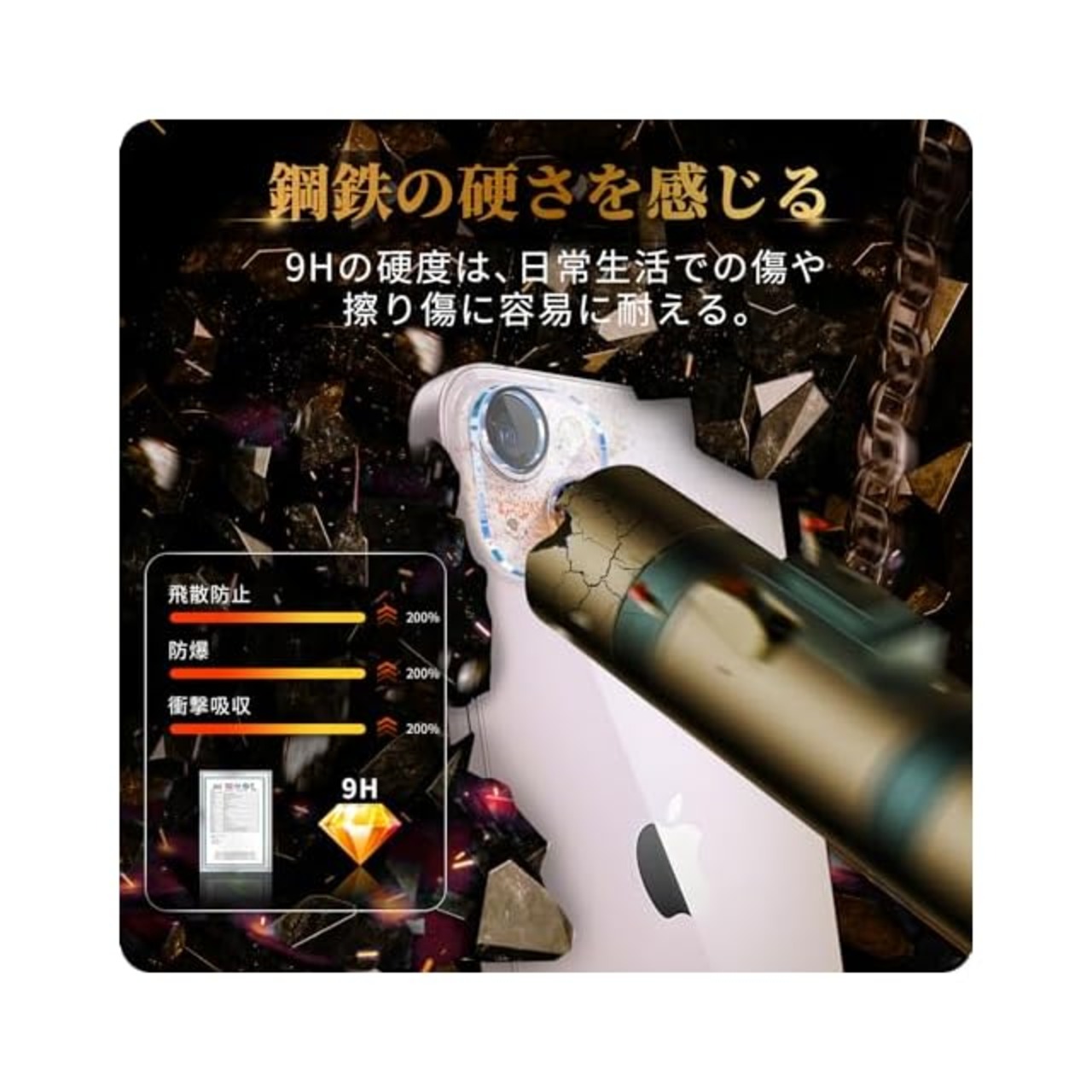 【優れるガラスを選択・硬さ9H+】 私たちの iphone14 / 14Plus カメラレンズ 保護 ガラスフィルム は業界最高レベルの硬さ9H+を使っており、4.5時間以上の高温処理加工しておりますので、ガラスフィルムは通常のガラスの硬さの5倍に達しました。シリコンコーティングを内蔵して、ショックを抑えることができ、画面への損害を最小限に抑えます。更に特別なデザインを使っており、保護フィルムが携帯電話の画面をしっかり保護する同時にガラスが割れでも、ガラスの破片が飛びません。安心できます。