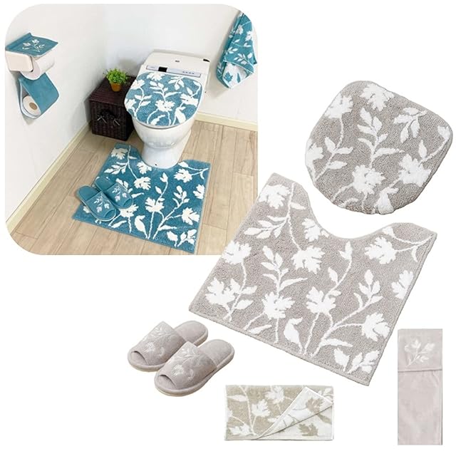 商品名:センコー(Senko) ニューシルエット トイレマット 約80×60cm グレー リーフ柄 モダン 54275