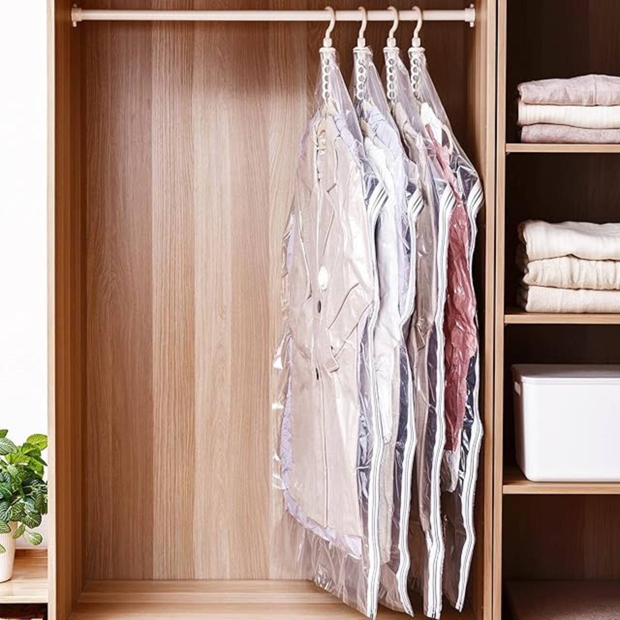 収納に大活躍:季節に合わない服がクローゼットのスペースをを占有する場合に、弊社の吊るせる圧縮袋を使用して、コートやジャケットなど入れて圧縮した後、最大80%のスペースを節約できます。また、高品質のPAとPE材質で作られるので、柔らかくて破れにくくて、再利用可能です