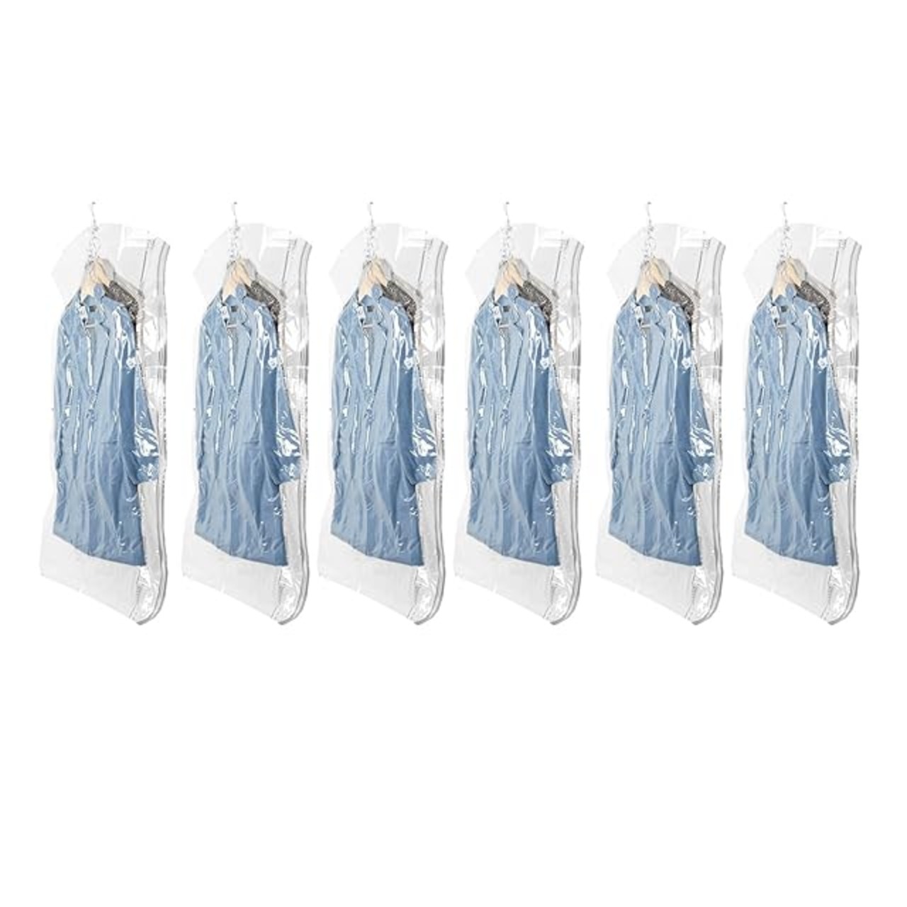 CLEVHOM 圧縮袋 吊るせる衣類圧縮袋 135 x 70cm 6枚入 吊り下げ 真空バッグ カビ ダニ対策 防塵 防湿 着物収納 コート 洋服 ジャケット スーツ用 大容量 360度回転 掃除機対応 省スペース 引越し 衣替え 旅行用 透明