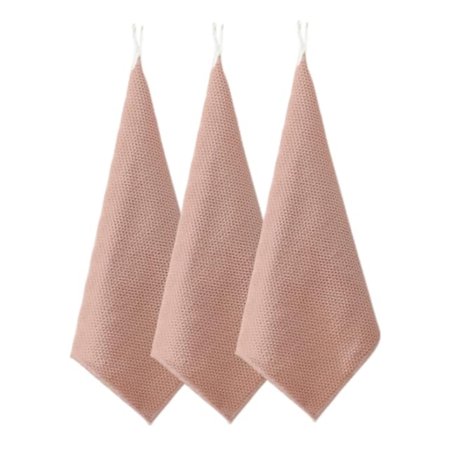 北欧おしゃれ キッチンタオル キッチンクロス ふきん 手拭き 布巾 台拭き ディッシュクロス ループ付き 速乾 食器拭き 30*30cm 3枚セット 吸水性 台所 手ふきん 防臭 抗菌 マイクロファイバー 毛羽立たない(ピンク3枚)