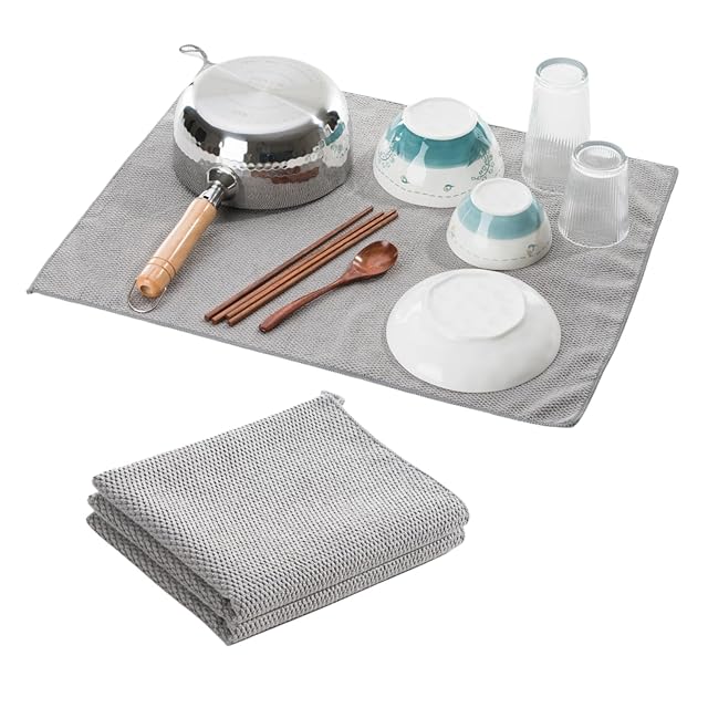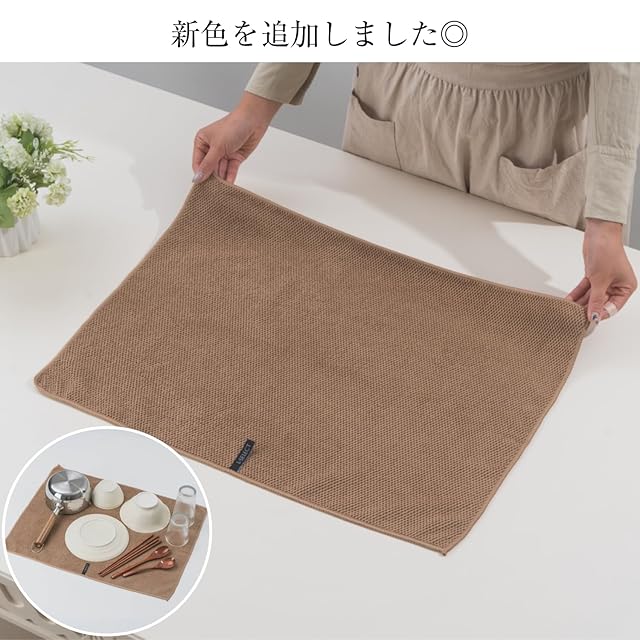 水切りタオル ティータオル 水切りマット 2枚セット 大判 45*60cm 吸水タオル 吸水クロス 食器拭き 食器/お皿/ 鍋拭き キッチンタオル キッチンクロス ふきん 布巾 台拭き ループ付き 速乾キッチン 吸水性 台所 手ふきん タオル 吸水 速乾 厚手 防臭 北欧 おしゃれ 衛生 抗菌 おしゃれ マイクロファイバー 毛羽立たない(グレー 2枚入)