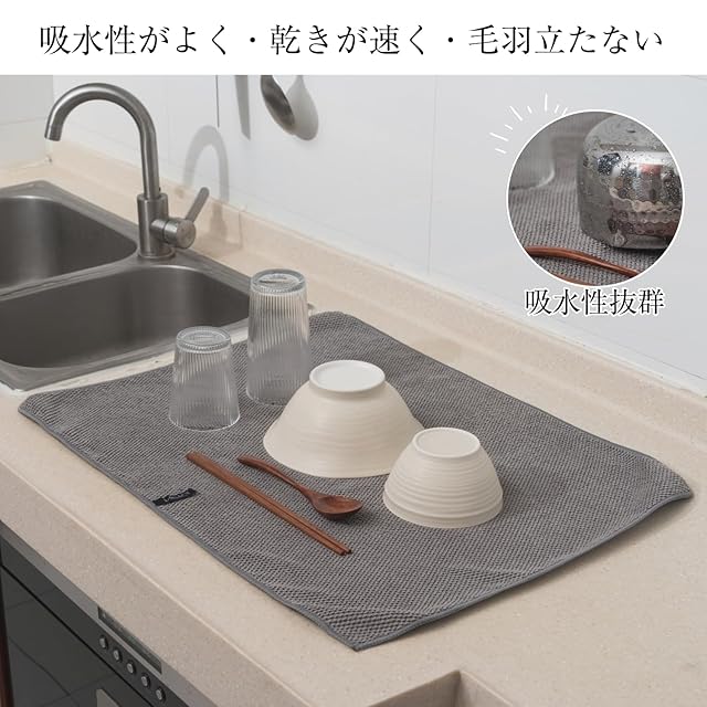 【耐久性良く丈夫】キッチンタオルの生地がマイクロファイバーを採用し、丈夫で長持ち。食器が洗った後の水拭きとして使われば、半年ぐらい続けて使えることが可能。毛羽立ちもほとんどない。