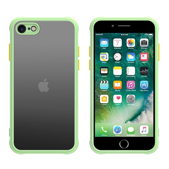 iphone se ケース iphone se3/se2 ケース スマホカバー 耐衝撃 指紋防止 滑り止め マット半透明 黄ばみなし レンズ保護 米軍MIL規格アイフォンse2 se3 7 8 用カバー 4.7インチ PinLiSheng (グリーン, iPhone SE2 / SE3 /8 /7)