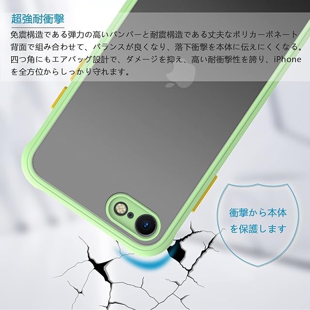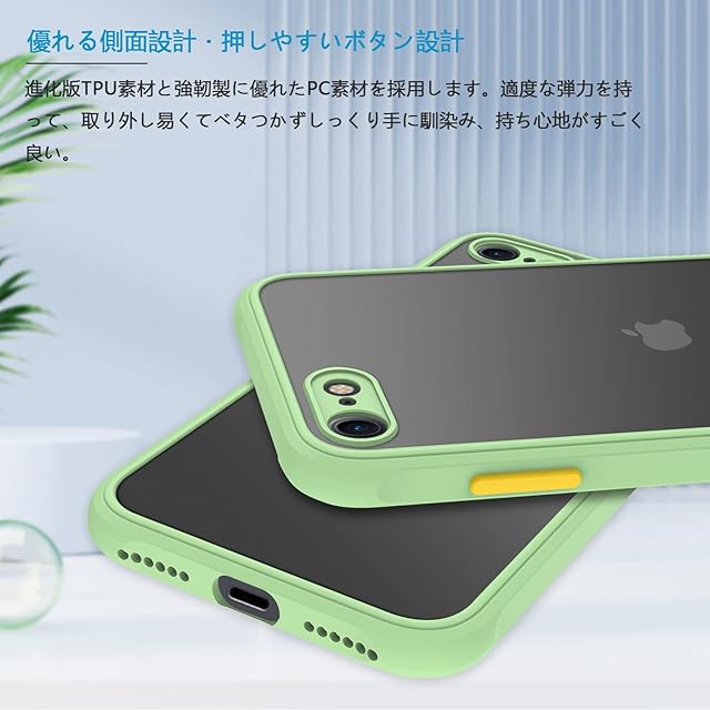 商品名:iphone se ケース iphone se3/se2 ケース スマホカバー 耐衝撃 指紋防止 滑り止め マット半透明 黄ばみなし レンズ保護 米軍MIL規格アイフォンse2 se3 7 8 用カバー 4.7インチ PinLiSheng (グリーン, iPhone SE2 / SE3 /8 /7)