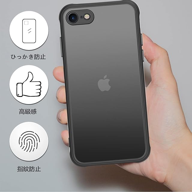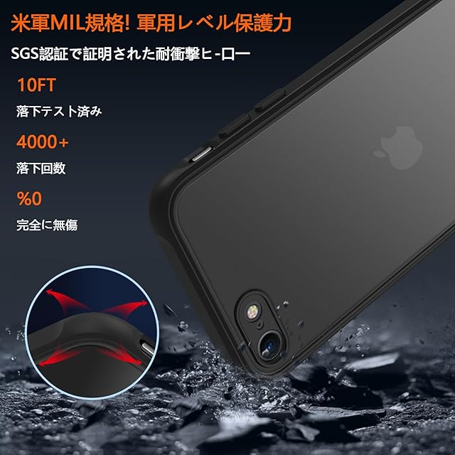 商品名:iphone se ケース iphone se3/se2 ケース スマホカバー 耐衝撃 指紋防止 滑り止め マット半透明 黄ばみなし レンズ保護 米軍MIL規格アイフォンse2 se3 7 8 用カバー 4.7インチ PinLiSheng (ブラック, iPhone SE2 / SE3 /8 /7)