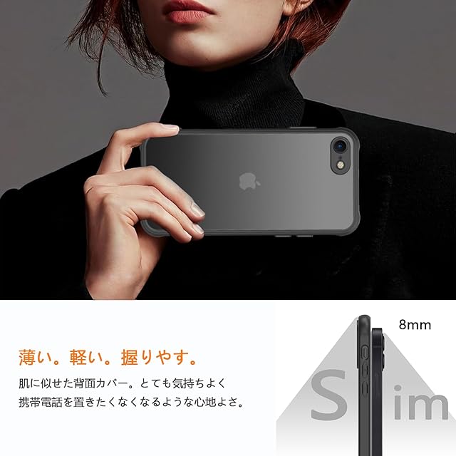 【対応機種】iPhone 専用です。精確にカット加工しているので、ボタンが押しやすく、ポートも使いやすくなっており、機能性に影響しません。<br> 【半透明・マットな質感】背面が透ける特性を汲み取ったデザインで、iPhoneのかっこいいリンゴロゴが薄っり見えて、高級感と神秘感が溢れている。背面のポリカーボネートは耐久性や耐摩耗性に優れ、長く使っても綺麗に見え。<br> 【高耐衝撃性・カメラ保護】免震構造である高弾力バンパーと耐震構造である丈夫なポリカーボネート背面で組み合わせて、バランスが良く落下衝撃を本体に伝えにくくなる。隆起エッジにより、スマホを置いた時にスクリーンやカメラが擦れにくくなり、傷から保護することができます。<br> 【スリム・軽量】この握りやすいケースは、厚さたった1.2 cmなので、スマホに近い感覚を味わうことができ、ケースをつけたままコネクタへの接続が可能で。<br> 【品質】iPhone ケースを安心してお使いいただくために、当店は製品に関する品質を提供します。製品に不具合がある場合、注文履歴画面より出品者にご連絡いただき、お問い合わせ内容に応じて、交換などの対応が可能です。<br>