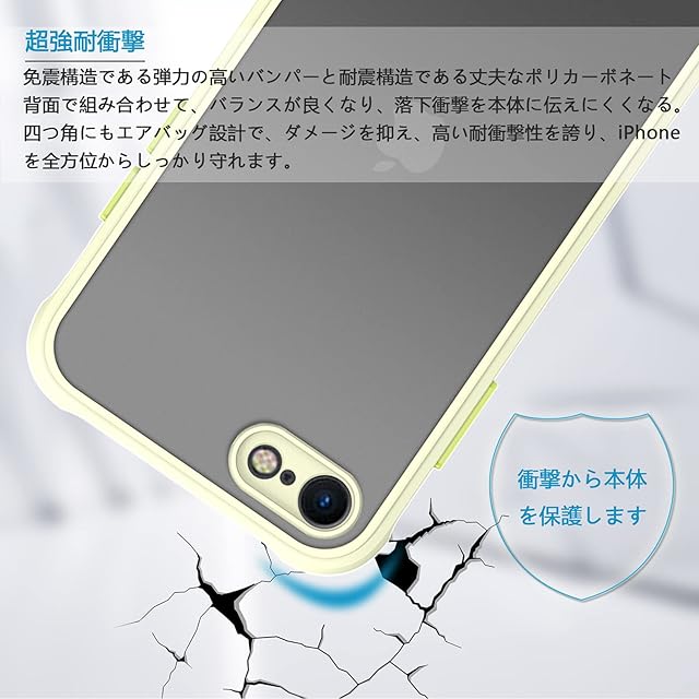【対応機種】iPhone 専用です。精確にカット加工しているので、ボタンが押しやすく、ポートも使いやすくなっており、機能性に影響しません。<br> 【半透明・マットな質感】背面が透ける特性を汲み取ったデザインで、iPhoneのかっこいいリンゴロゴが薄っり見えて、高級感と神秘感が溢れている。背面のポリカーボネートは耐久性や耐摩耗性に優れ、長く使っても綺麗に見え。<br> 【高耐衝撃性・カメラ保護】免震構造である高弾力バンパーと耐震構造である丈夫なポリカーボネート背面で組み合わせて、バランスが良く落下衝撃を本体に伝えにくくなる。隆起エッジにより、スマホを置いた時にスクリーンやカメラが擦れにくくなり、傷から保護することができます。<br> 【スリム・軽量】この握りやすいケースは、厚さたった1.2 cmなので、スマホに近い感覚を味わうことができ、ケースをつけたままコネクタへの接続が可能で。<br> 【品質】iPhone ケースを安心してお使いいただくために、当店は製品に関する品質を提供します。製品に不具合がある場合、注文履歴画面より出品者にご連絡いただき、お問い合わせ内容に応じて、交換などの対応が可能です。<br>
