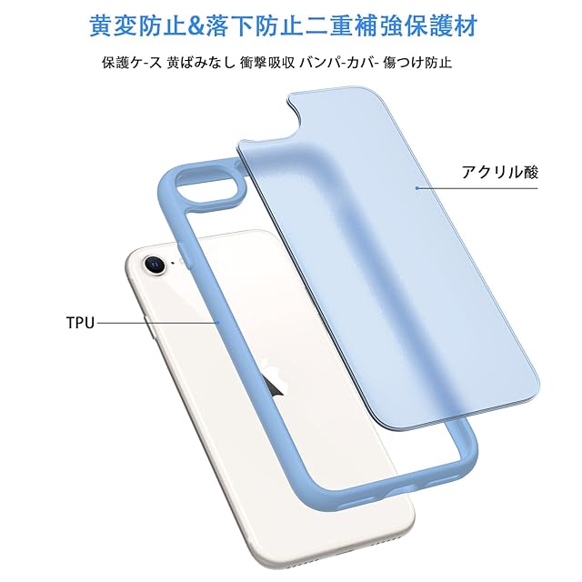 商品名:iphone se ケース iphone se3/se2 ケース スマホカバー 耐衝撃 指紋防止 滑り止め マット半透明 黄ばみなし レンズ保護 米軍MIL規格アイフォンse2 se3 7 8 用カバー 4.7インチ PinLiSheng (ライトブルー, iPhone SE2 / SE3 /8 /7)