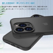 【対応機種】iPhone 専用です。精確にカット加工しているので、ボタンが押しやすく、ポートも使いやすくなっており、機能性に影響しません。<br> 【半透明・マットな質感】背面が透ける特性を汲み取ったデザインで、iPhoneのかっこいいリンゴロゴが薄っり見えて、高級感と神秘感が溢れている。背面のポリカーボネートは耐久性や耐摩耗性に優れ、長く使っても綺麗に見え。<br> 【高耐衝撃性・カメラ保護】免震構造である高弾力バンパーと耐震構造である丈夫なポリカーボネート背面で組み合わせて、バランスが良く落下衝撃を本体に伝えにくくなる。隆起エッジにより、スマホを置いた時にスクリーンやカメラが擦れにくくなり、傷から保護することができます。<br> 【スリム・軽量】この握りやすいケースは、厚さたった1.2 cmなので、スマホに近い感覚を味わうことができ、ケースをつけたままコネクタへの接続が可能で。<br> 【品質】iPhone ケースを安心してお使いいただくために、当店は製品に関する品質を提供します。製品に不具合がある場合、注文履歴画面より出品者にご連絡いただき、お問い合わせ内容に応じて、交換などの対応が可能です。<br>