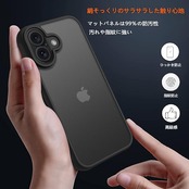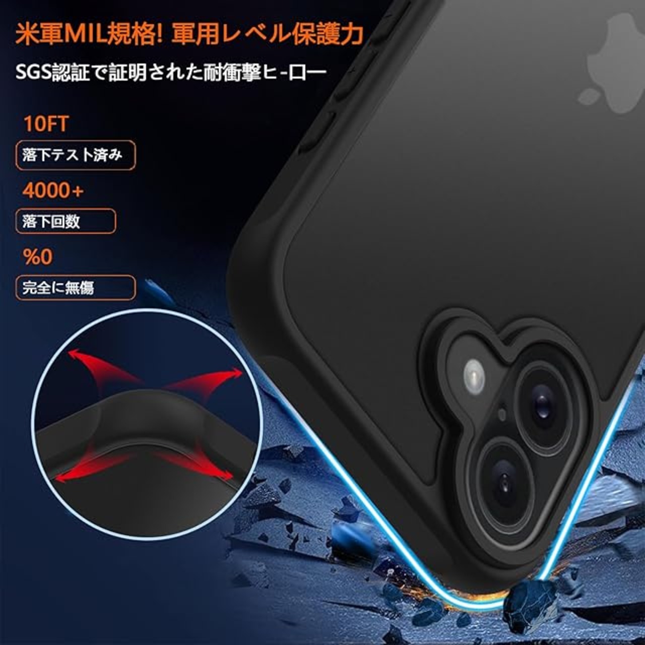 商品名:iPhone 16 ケース iphone ケース スマホカバー 耐衝撃 指紋防止 滑り止め マット半透明 黄ばみなし レンズ保護 米軍MIL規格アイフォン16 用カバー インチ PinLiSheng (ブラック, iPhone 16)