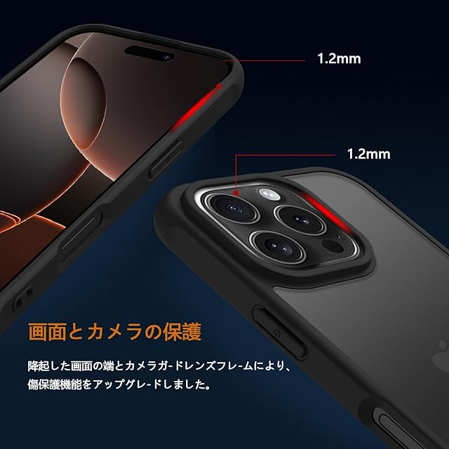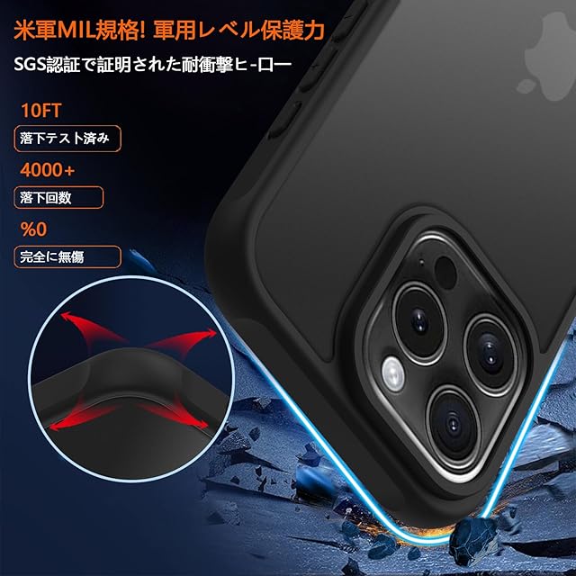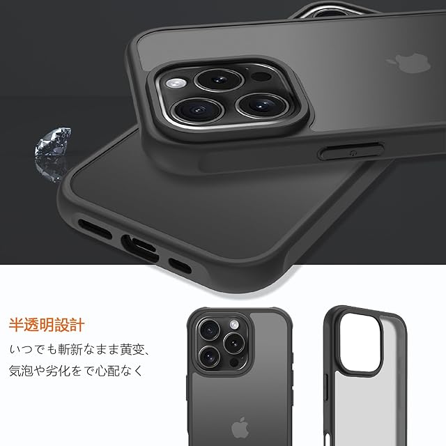 商品名:iPhone 16 Pro ケース iphone ケース 16 Pro スマホカバー 耐衝撃 指紋防止 滑り止め マット半透明 黄ばみなし レンズ保護 米軍MIL規格アイフォン16 Pro 用カバー インチ PinLiSheng (ブラック, iPhone 16 Pro)