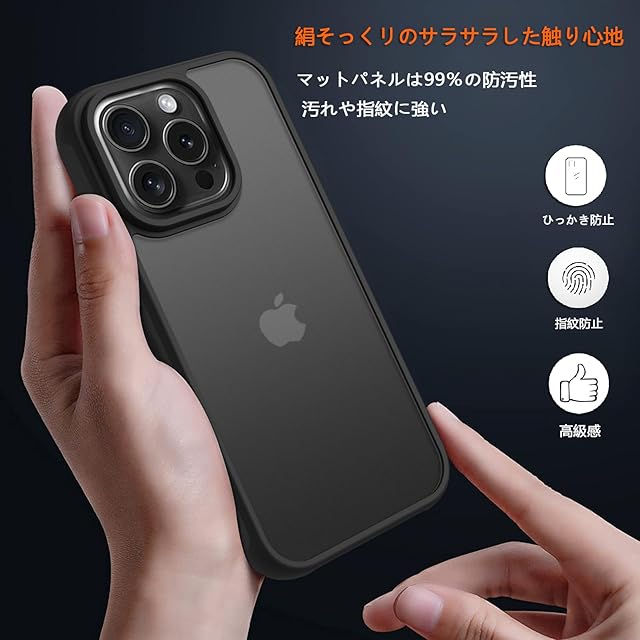 iPhone 16 Pro ケース iphone ケース 16 Pro スマホカバー 耐衝撃 指紋防止 滑り止め マット半透明 黄ばみなし レンズ保護 米軍MIL規格アイフォン16 Pro 用カバー インチ PinLiSheng (ブラック, iPhone 16 Pro)