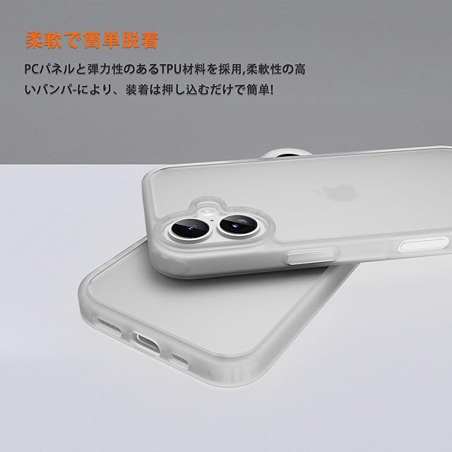 【対応機種】iPhone 専用です。精確にカット加工しているので、ボタンが押しやすく、ポートも使いやすくなっており、機能性に影響しません。<br> 【半透明・マットな質感】背面が透ける特性を汲み取ったデザインで、iPhoneのかっこいいリンゴロゴが薄っり見えて、高級感と神秘感が溢れている。背面のポリカーボネートは耐久性や耐摩耗性に優れ、長く使っても綺麗に見え。<br> 【高耐衝撃性・カメラ保護】免震構造である高弾力バンパーと耐震構造である丈夫なポリカーボネート背面で組み合わせて、バランスが良く落下衝撃を本体に伝えにくくなる。隆起エッジにより、スマホを置いた時にスクリーンやカメラが擦れにくくなり、傷から保護することができます。<br> 【スリム・軽量】この握りやすいケースは、厚さたった1.2 cmなので、スマホに近い感覚を味わうことができ、ケースをつけたままコネクタへの接続が可能で。<br> 【品質】iPhone ケースを安心してお使いいただくために、当店は製品に関する品質を提供します。製品に不具合がある場合、注文履歴画面より出品者にご連絡いただき、お問い合わせ内容に応じて、交換などの対応が可能です。<br>