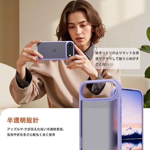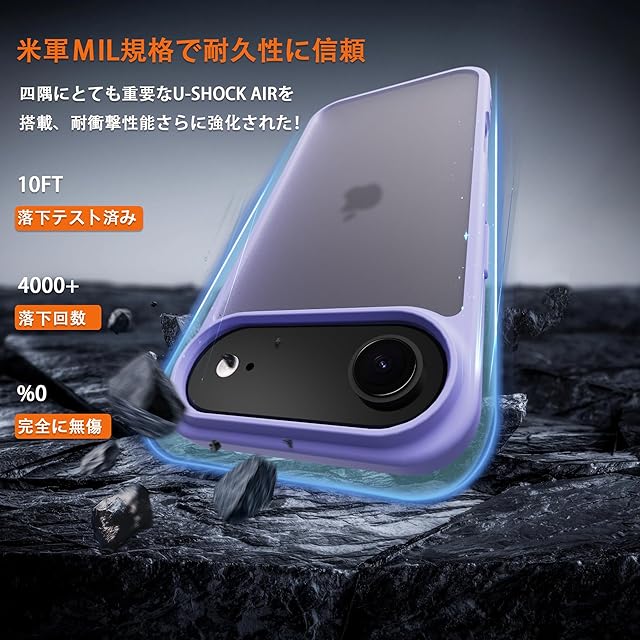 【対応機種】iPhone 17 air 専用です。精確にカット加工しているので、ボタンが押しやすく、ポートも使いやすくなっており、機能性に影響しません。<br> 【半透明・マットな質感】背面が透ける特性を汲み取ったデザインで、iPhoneのかっこいいリンゴロゴが薄っり見えて、高級感と神秘感が溢れている。背面のポリカーボネートは耐久性や耐摩耗性に優れ、長く使っても綺麗に見え。<br> 【高耐衝撃性・カメラ保護】免震構造である高弾力バンパーと耐震構造である丈夫なポリカーボネート背面で組み合わせて、バランスが良く落下衝撃を本体に伝えにくくなる。隆起エッジにより、スマホを置いた時にスクリーンやカメラが擦れにくくなり、傷から保護することができます。<br> 【スリム・軽量】この握りやすいケースは、厚さたった1.2 cmなので、スマホに近い感覚を味わうことができ、ケースをつけたままコネクタへの接続が可能で。<br> 【品質】iPhone ケースを安心してお使いいただくために、当店は製品に関する品質を提供します。製品に不具合がある場合、注文履歴画面より出品者にご連絡いただき、お問い合わせ内容に応じて、交換などの対応が可能です。<br>