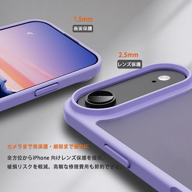 【細部まで保護】ケースは液晶画面より1.5mm高く、カメラレンズより2.5mm高く、ディスプレイやカメラレンズへのダメージを最低限まで抑えます。細部まで保護しており、安心感は抜群です。