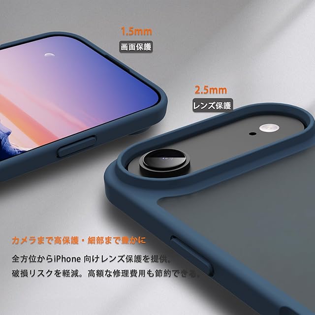 【細部まで保護】ケースは液晶画面より1.5mm高く、カメラレンズより2.5mm高く、ディスプレイやカメラレンズへのダメージを最低限まで抑えます。細部まで保護しており、安心感は抜群です。