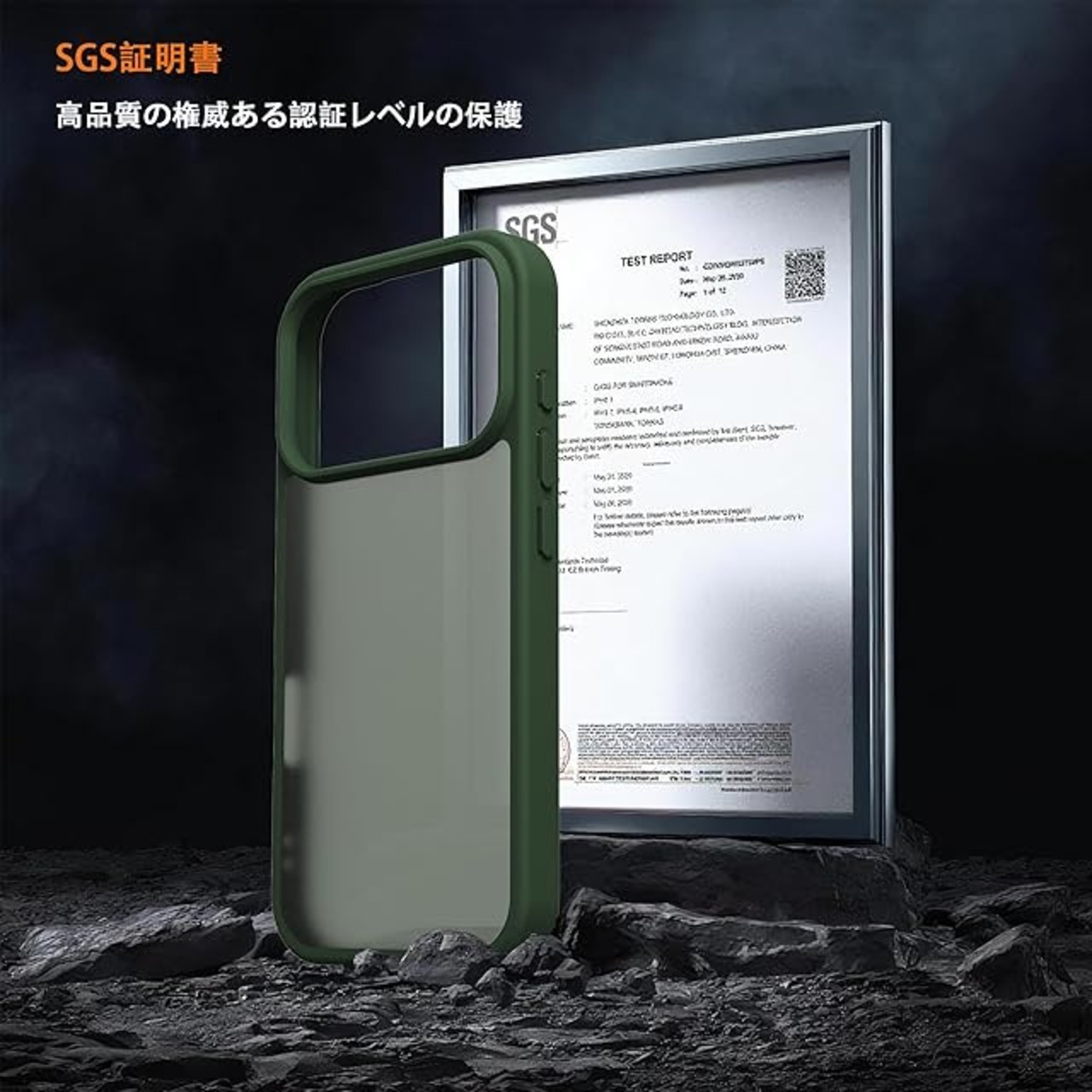 【MIL規格の耐衝撃設計】 米軍MIL規格の衝撃吸収ポケットを四隅に内蔵。様々な角度から落下させる実験をしたところ、本体に傷はつきませんでした。高い耐衝撃性を誇り、本体を全方位からしっかりと守ります。