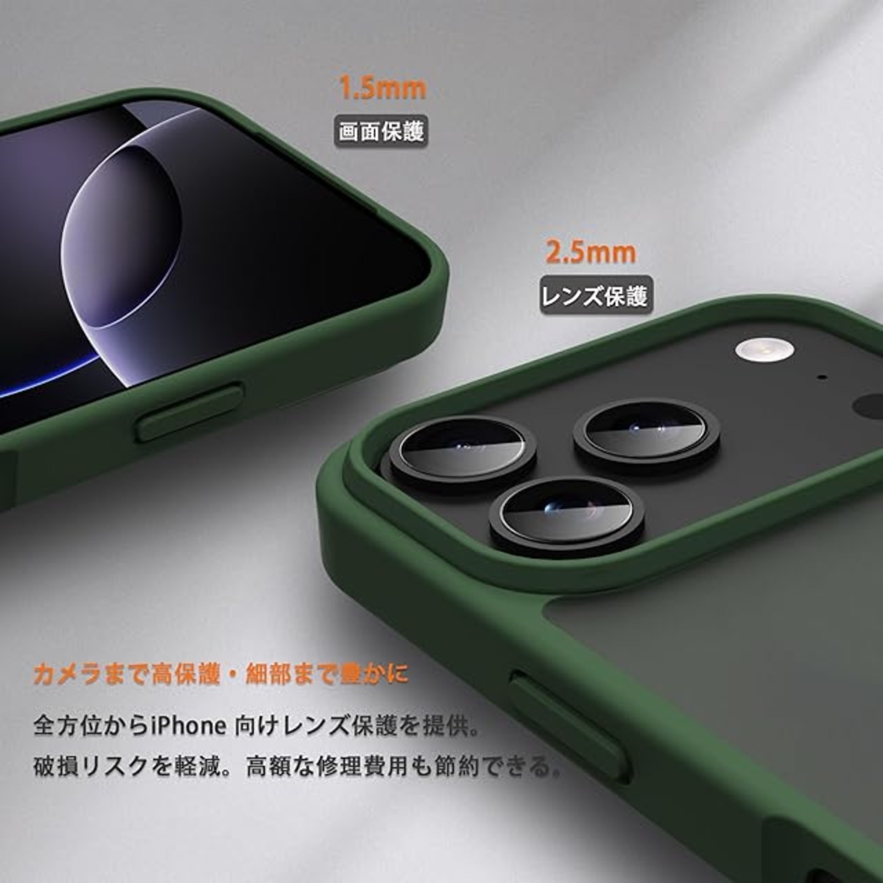 【細部まで保護】ケースは液晶画面より1.5mm高く、カメラレンズより2.5mm高く、ディスプレイやカメラレンズへのダメージを最低限まで抑えます。細部まで保護しており、安心感は抜群です。