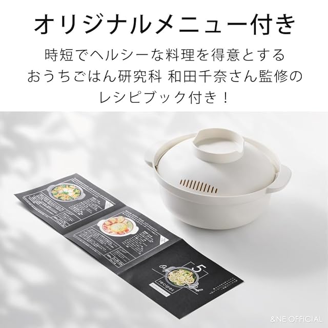 商品名:アンドエヌイー(&NE) レンジポット nikii ホワイト 1.5L レンジ鍋 レコポ recopo 日本製 一人用 レシピ付き 小型 軽量 レンジ調理鍋 電子レンジ用 鍋 ラーメン パスタ NIM-205-WH