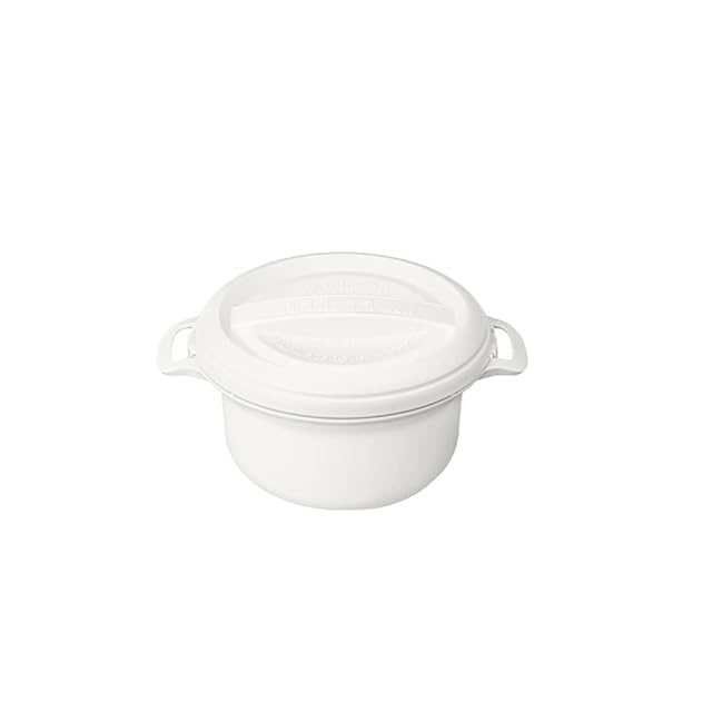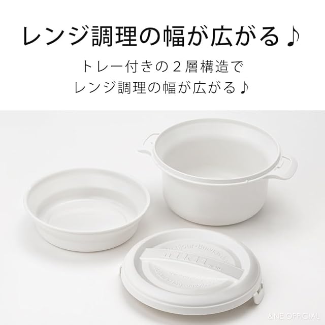 商品名:アンドエヌイー(&NE) レンジクッカー nikii ホワイト 満容量740ml 電子レンジ調理器 日本製 電子レンジ 食洗機 対応 耐熱 煮込み料理 カレー シチュー 丸型 小型 レシピ付き 一人分 NIM-244-WH