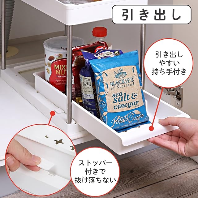 商品名:アストロ 【使い方動画あり】 シンク下収納ラック ホワイト 下段スライド式 2段 キッチンラック 洗面台下 収納ラック キッチン収納 調味料ラック 台所 洗面所 仕切り付き 310-26