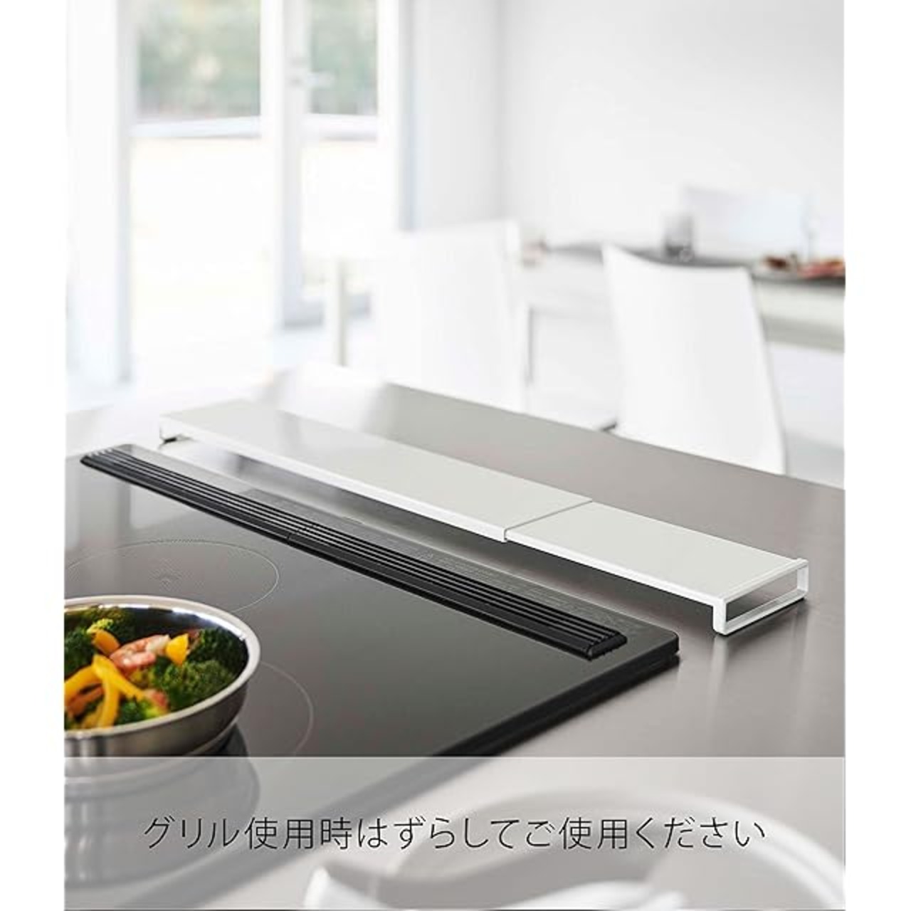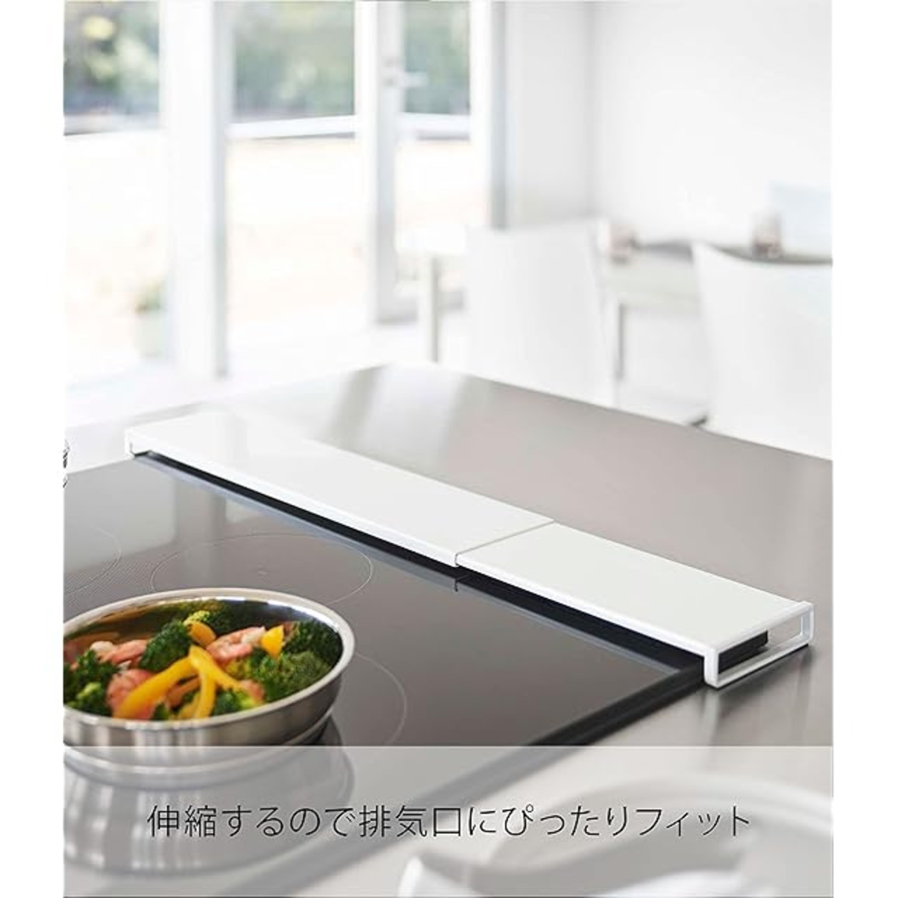 商品名:山崎実業(Yamazaki) 伸縮 排気口カバー フラットタイプ ホワイト 約W44.5~77×D10×H2.5cm タワー tower 幅約42.5~75cmまで対応 薄型 油はねガード 60cm 75cm IH コンロ カバー 5732