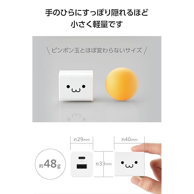 商品名:エレコム Type-C 充電器 20W USB PD対応 2ポート USB-C USB-A 【iPhone 16 15 14 Android 等対応】 しろちゃん EC-AC22WF
