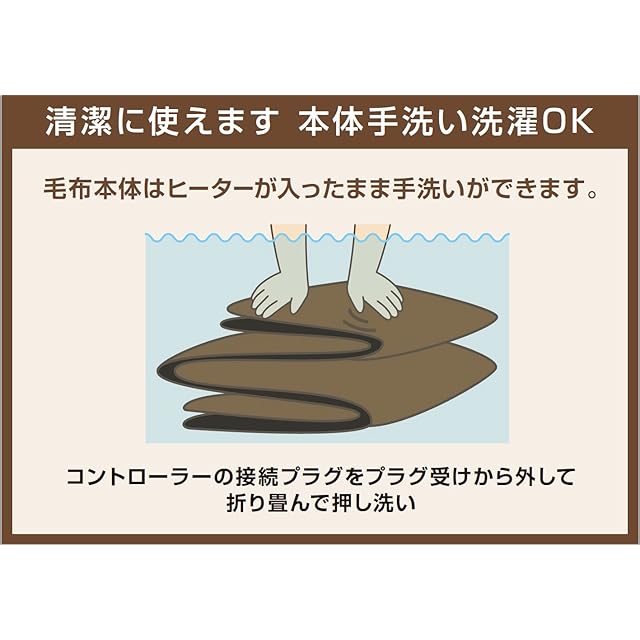 【手洗い&ダニ対策ができる】 清潔さを保つために、丸洗いとダニ対策機能付きの電気敷毛布。 指定の手順に従い約3時間通電することで、ダニ対策ができます。いつでも清潔な状態でお使いいただけます。