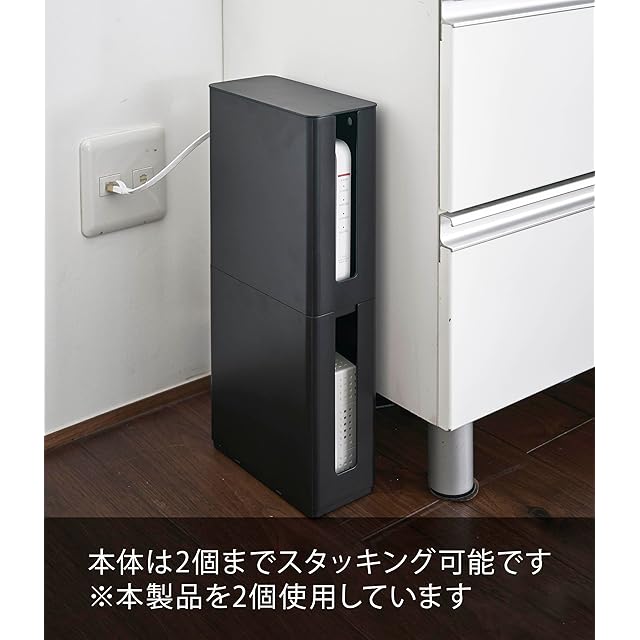 商品名:山崎実業(Yamazaki) 重ねられる スリム 蓋付き ルーター収納 ケース ブラック 約W9.7XD20.2XH22.2cm スマート テレビ裏収納 スタッキング可 4914