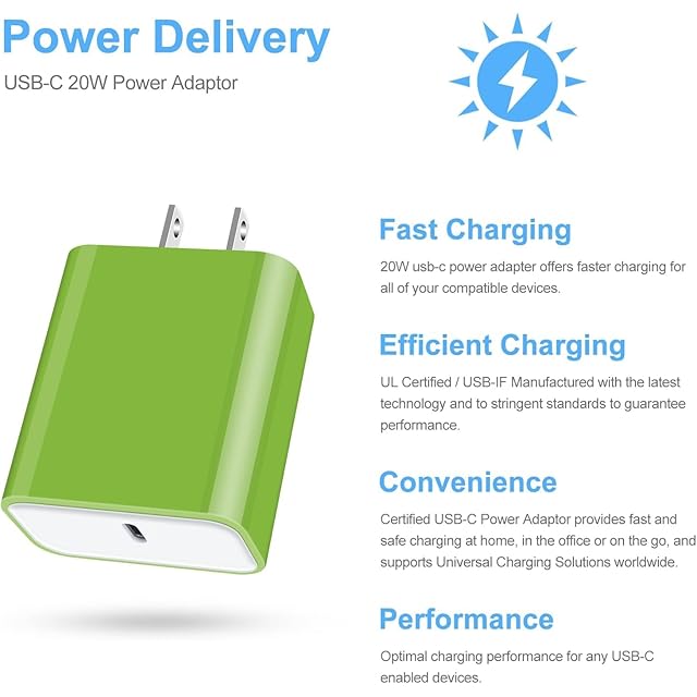 商品名:ChrisPow iPhone 充電器 acアダプタ type-c 急速充電器 純正 20W USB-C電源アダプター (pse認証/PD3.0/小型) アイフォン15充電器 タイプCコンセント アンドロイド充電器 アダプター iPhone15/15 pro/15plus/15pro max Andriod/iPhone/iPad 対応(グリーン)