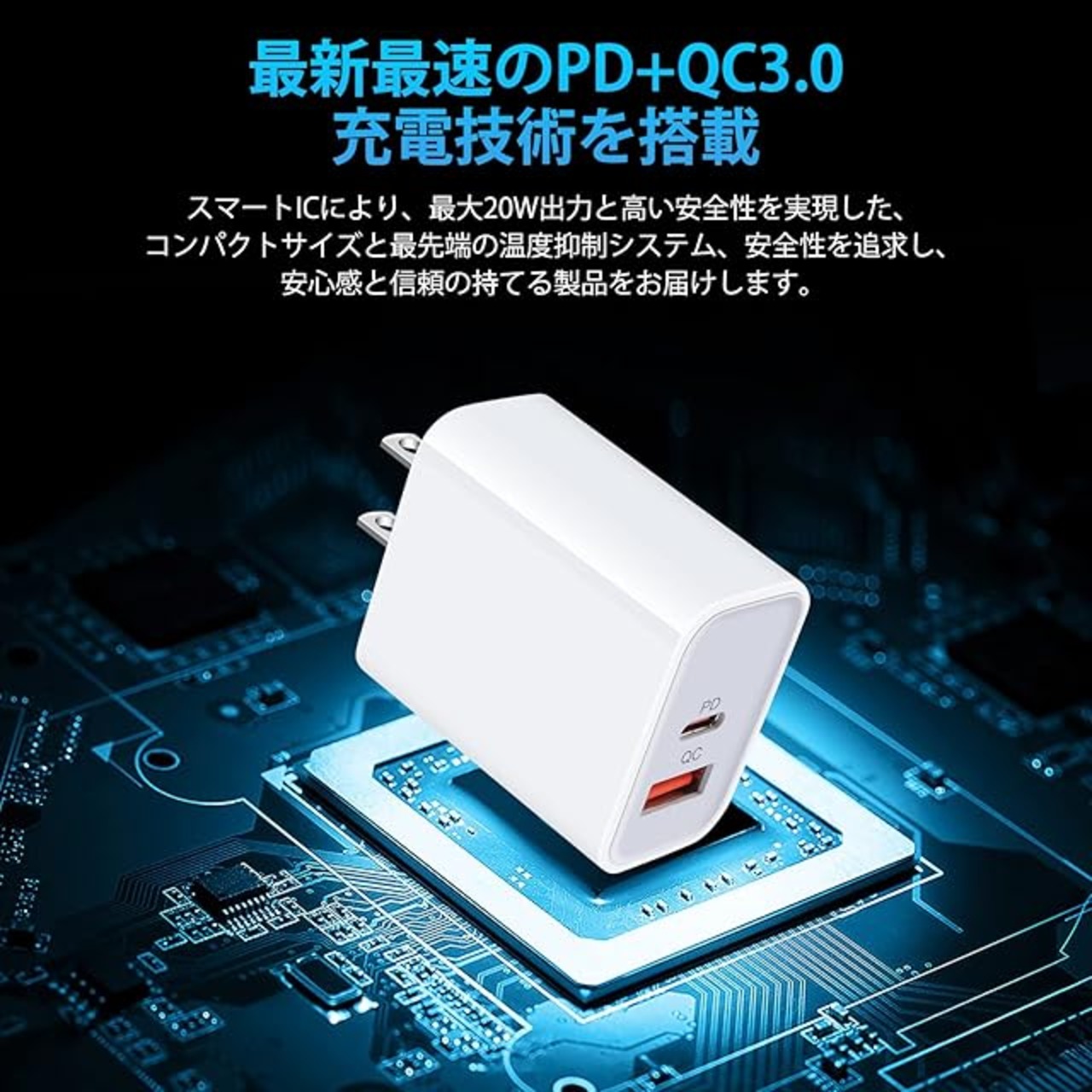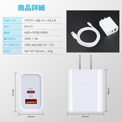 <b>CHRISPOW 最新、最速、そして最も効率的のUSB充電技術、PowerDeliveryとQuickCharge規格を二つ備えてなタイプCアダプター</b><br><br> <b>製品の仕様</b><br> - パッケージ:USB-A&USB-C電源アダプター*1個;<br> USB-C&USB-Cケーブル*1本/1.83m;<br> - サイズ:約36 x 38 x 42mm;<br> - 重さ:充電器約40g;<br> - USB-C出力:PD3.0 対応--5V=3A; 9V=2.22A; 12V=1.66A<br> - USB-A出力:QC3.0 対応--5V=3A; 9V=2A; 12V=1.5A<br> - 入力:100-240V 0.6A 50-60Hz<br> - ポート:USB C + USB A<br><br> [二つ充電技術が1個で済む]:PowerDeliveryおよびQuickCharge3.0の二つ充電技術を通じて高速と効率的に充電を提供します。複数ポートで急速充電できてAndroidおよびiOSデバイスに最適な高品質充電アダプターです。<br> [幅広い互換性]:USB-CおよびUSB-Aポート搭載により、あらゆるUSB機器にフルスピード充電が可能です。iPhoneやGalaxy、Xperiaなどの各種Androidスマートフォンとの互換性がありますが、11インチiPad Proや12.9インチiPad Proにも最も優れた充電パフォーマンスを発揮します。<br> [20W/3A急速充電]:スマホ急速充電器は最大20Wで、一般的な5W出力の充電器に比べ、最大3倍速く充電できます。QC2.0より1.4倍です。クイックチャージ技術(1.0、2.0、3.0)などおよび非急速充電デバイスと互換性があります。<br> [コンパクトデザイン]:2ポート搭載なコンパクト設計、カバンにスムーズに収納し、どこにでも気軽に持ち運ぶことができます。AC100-240Vに対応しますので、海外旅行でも持ち行きます。<br> [使用安心安全]:独自の多重保護システムがサージ保護やショート防止、温度管理などの優れた機能を提供し、長期間お使いいただけます。<br><br> <b>対応機種</b><br><br> (iPhone機種充電場合にUSB-C & ライトニングケーブルは別売りです。)<br><br> -iPhone 13,13mini,13 Pro,13 Pro Max,12, 12 Pro, 12 Pro Max, 12 Mini, SE3/2, 11, 11 Pro, 11 Pro Max, XR, XS, XS Max, X, 8, 8 Plus<br> -iPad Pro/Air 4 3/iPad Mini 5(2018 iPad Pro充電端子は USB C ポートです。)<br> -Galaxy Note 21, 20, 20 Ultra, 8, 9, 10, 10+, 10 Lite <br> -Galaxy S21, S21+, S21 Ultra, S20 FE, S20+ 5G,S20 Ultra, S10+ Plus, S9, S9+ Plus, S8, S8+ Plus/Active<br> -Xperia 10 IV, Ace III, 5 ll, 1 lll, 1 ll, 1, XZ2 Premium, XZ2 Compact, XZ2, Touch, XZs, XZ1, XZ Premium, XA2 Ultra, XA1, XZ3, 10 Plus<br> -Google Pixel, Pixel 2, Pixel 3, Pixel XL, Pixel 2XL, Pixel 3XL, Pixel 3A, Pixel 3A XL, Pixel C Tab, Google Chromebook Pixel<br> -LG G9,G8,G7 Thing, G6, G5, Stylo 4, V20, V30, V35, V30S, V40 ThinQ Plus<br> -Motorola Moto G6, G6 Plus, G7 Plus, G7 Power, Moto X4, Moto Z4, Z3, Z3 Play, Z2 Force, Z2 Play, Moto Z, Z Play, Z Force, Z Force Droid, Turbo Charger<br> -OPPO Reno5a<br><br> ご注意:急速充電を実現しようとすれば、お使いの機種はPD/QC急速充電に対応する必要がありますので、ご購入の前にご確認ください。