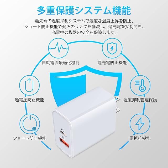 ❤【 PSE認証済で安心・安全 】 typec充電器はPSEマーク付きの電気用品で技術基準の適合性が確認され、過電圧、過電流、過熱、および回路のショートを防げ、急速かつ安全な充電を提供できます。