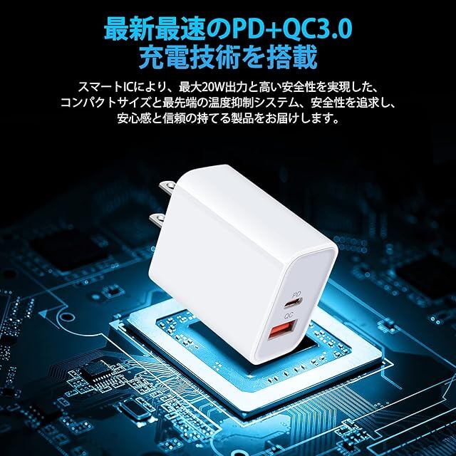 商品名:タイプC充電器 Android充電器 PD充電器 20W/3A 2ポートUSB Type Cケーブル 1.83m/1本 ChrisPow qc3.0アダプター アンドロイド充電器 USB Cコンセント 急速充電器 Type C USB充電器 Type C ACアダプター USB-C電源アダプタ OPPO Reno7A 5A,Aquos zero6 R6 sense6,Galaxy F52 S22 S21 A51 A52,Xperia 10 IV,Ace iii,Moto G52j,iPhone 13 12