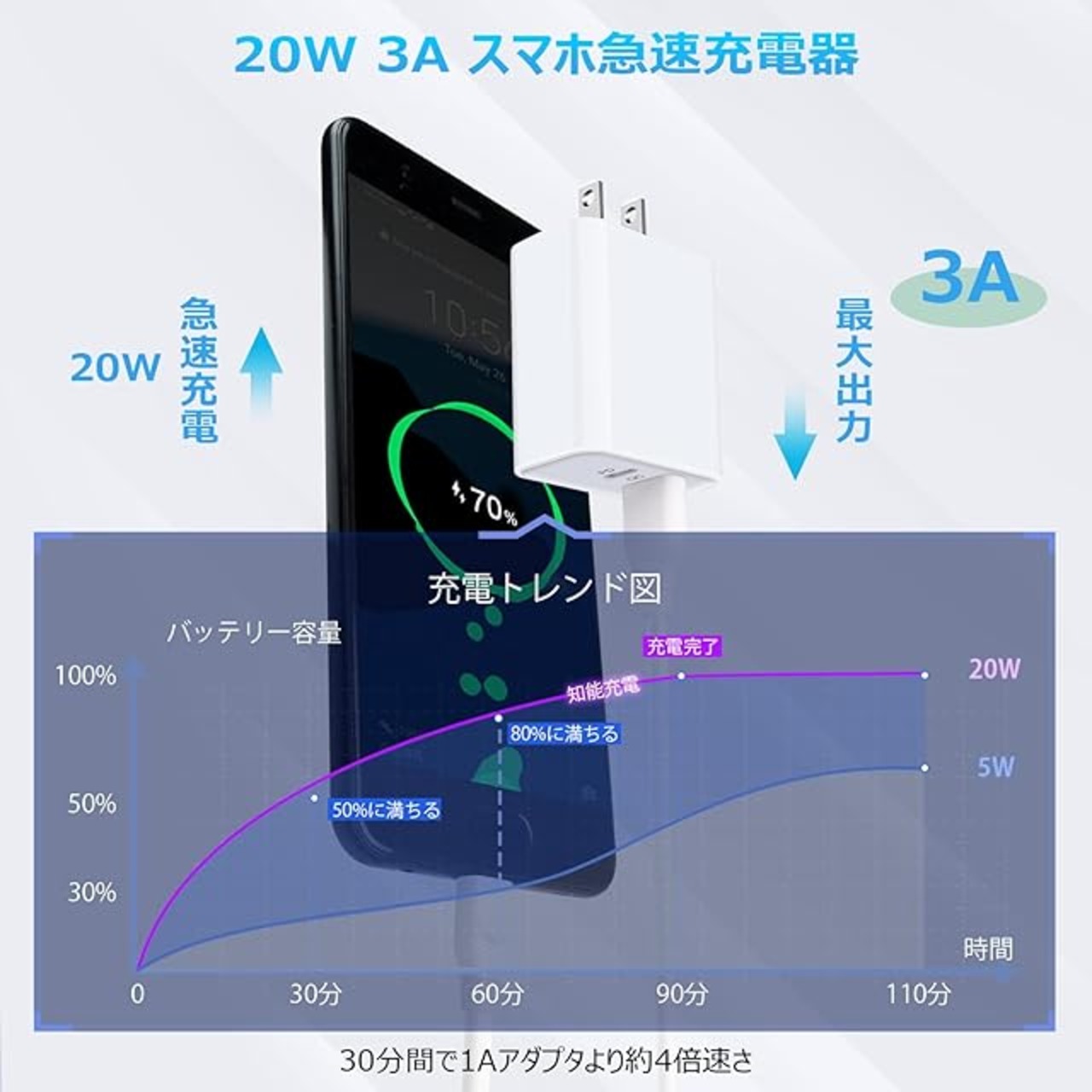 ❤【1台2役・最新PD+QC3.0充電技術備えて】 PD(Power Delivery)とQC(Qualcomm Quick Charge3.0)を採用することで、急速充電対応な機種の充電時間が大幅に短縮します。普通の5V/1A充電器と比べて、充電スピードが最大3倍速くになります。しかも、Quick Charge3.0/2.0急速充電と互換性があります。