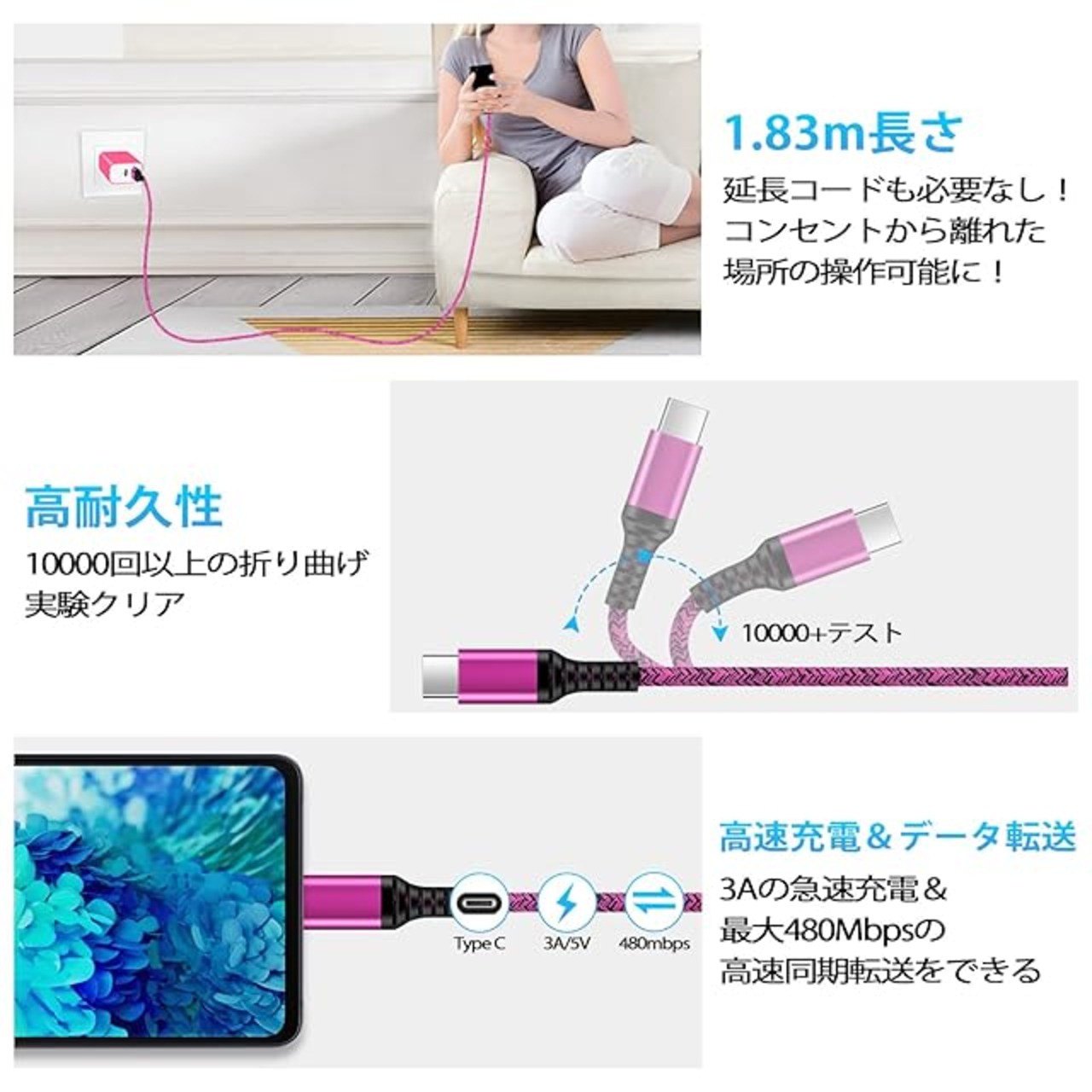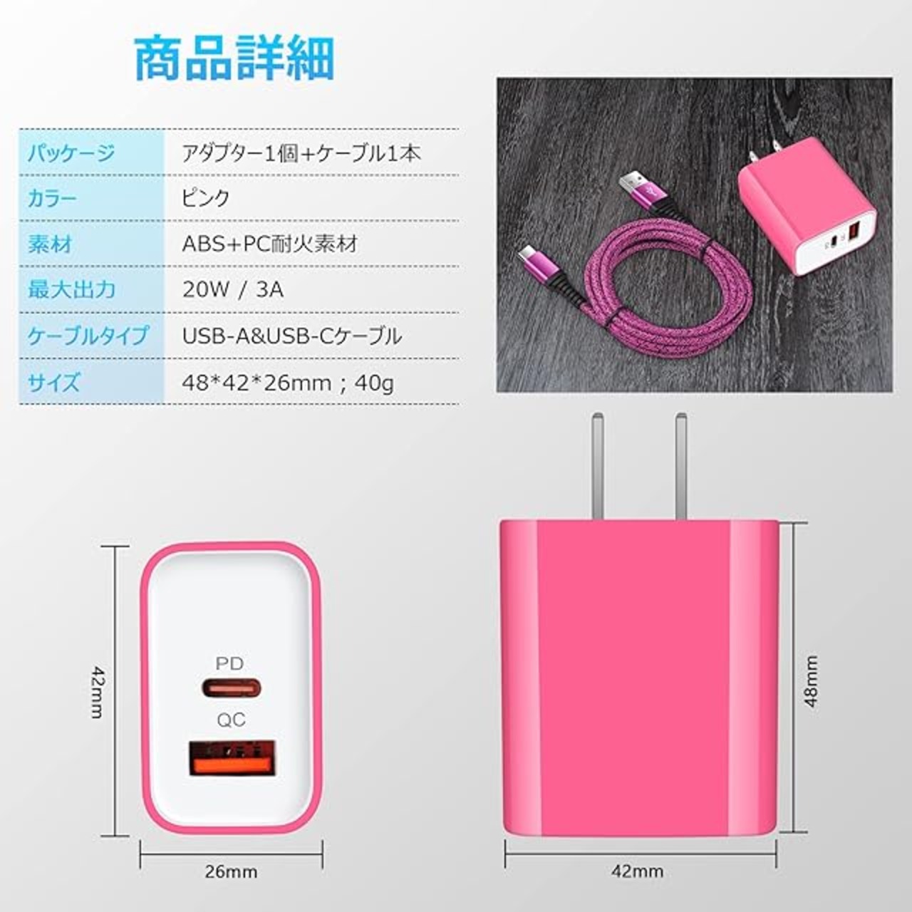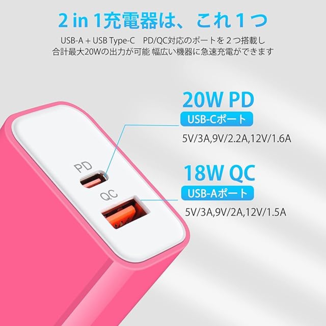 商品名:タイプC充電器 Android充電器 PD充電器 20W/3A 2ポートUSB Type Cケーブル 1.83m/1本 ChrisPow qc3.0アダプター アンドロイド充電器 USB Cコンセント 急速充電器 Type C USB充電器 Type C ACアダプター USB-C電源アダプタ OPPO Reno7A 5A,Aquos zero6 R6 sense6,Galaxy F52 S22 S21 A51 A52,Xperia 10 IV,Ace iii,Moto G52j,iPhone 13 12