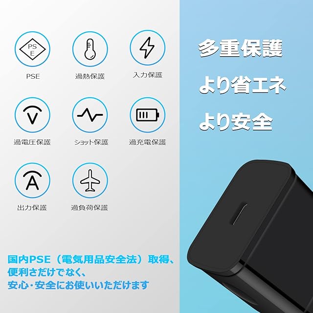 ❤【 PSE認証済で安心・安全 】: typec充電器はPSEマーク付きの電気用品で技術基準の適合性が確認され、過電圧、過電流、過熱、および回路のショートを防げ、急速かつ安全な充電を提供できます。